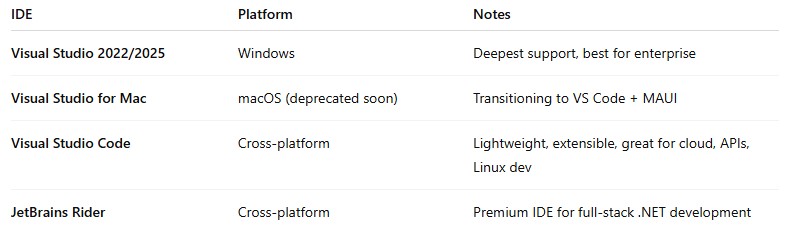 In 2025, the .NET ecosystem is rich and multi-layered. Here are some of its core components: